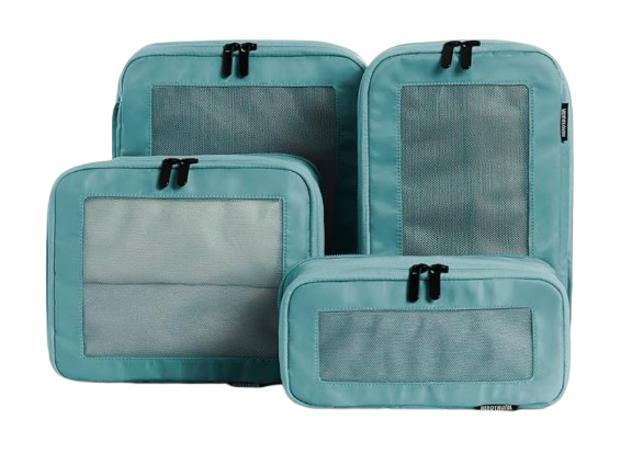 I mostly use my compression cubes when I’m traveling somewhere cold—Scotland, Switzerland, Wyoming, etc. The dual-zipper technology keeps the bulkiest of pieces (like sweaters and down jackets) more compact and gives me a bit more space to pack other items.