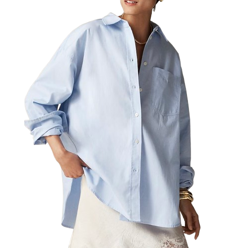 I’ve written about my love of an oversized button-down several times over the last year. I wear a now sold-out white version of this Ralph Lauren style, and I can confidently say it’s joined me on at least 90% of my 2025 travels. It’s casual enough to be worn for a travel day, but it’s incredibly easy to dress up with jewelry and a bright lip color for dinner at an upscale hotel.