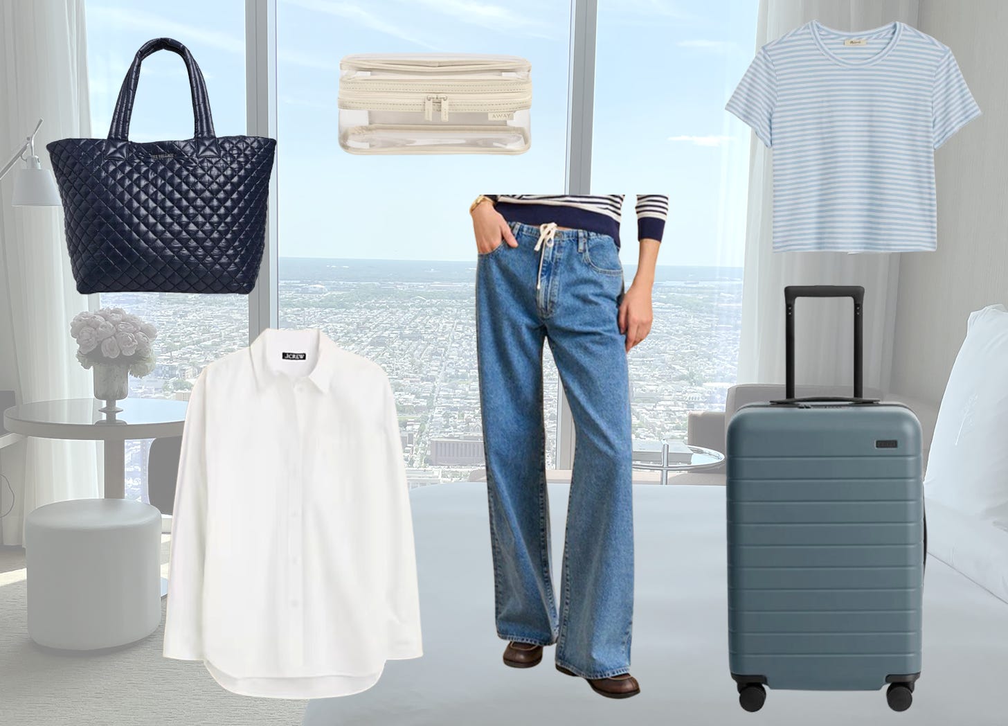Because I’ve only had a few days at home in between each trip, I’ve almost been on autopilot when packing. I grab the same suitcase, the same packing cubes, the same jeans, the same bathing suit, the same toiletry bag. A few pieces change here and there, but for the most part, I have a solid lineup—and I’m sharing my go-to pieces with you below.